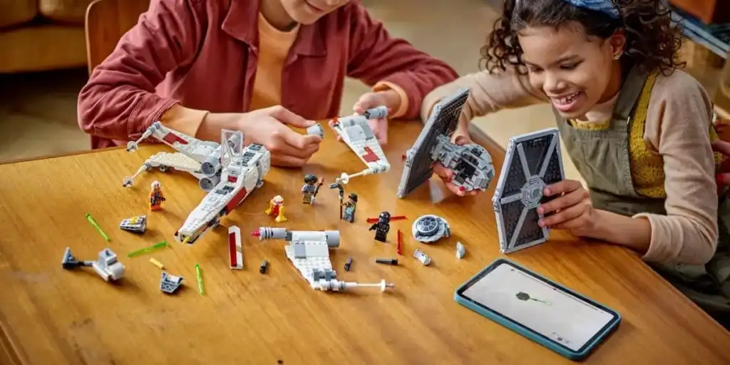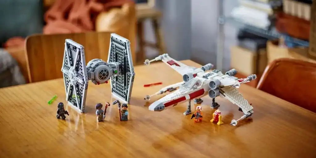 Второй набор включает 1 063 детали и позволяет собрать истребители X-Wing и TIE Fighter. Но это не всё — при желании можно объединить два конструктора, создав совершенно новый корабль, отражающий безумную концепцию наборов. В комплект также входят пять минифигурок, среди которых пилот повстанцев и штурман Империи.