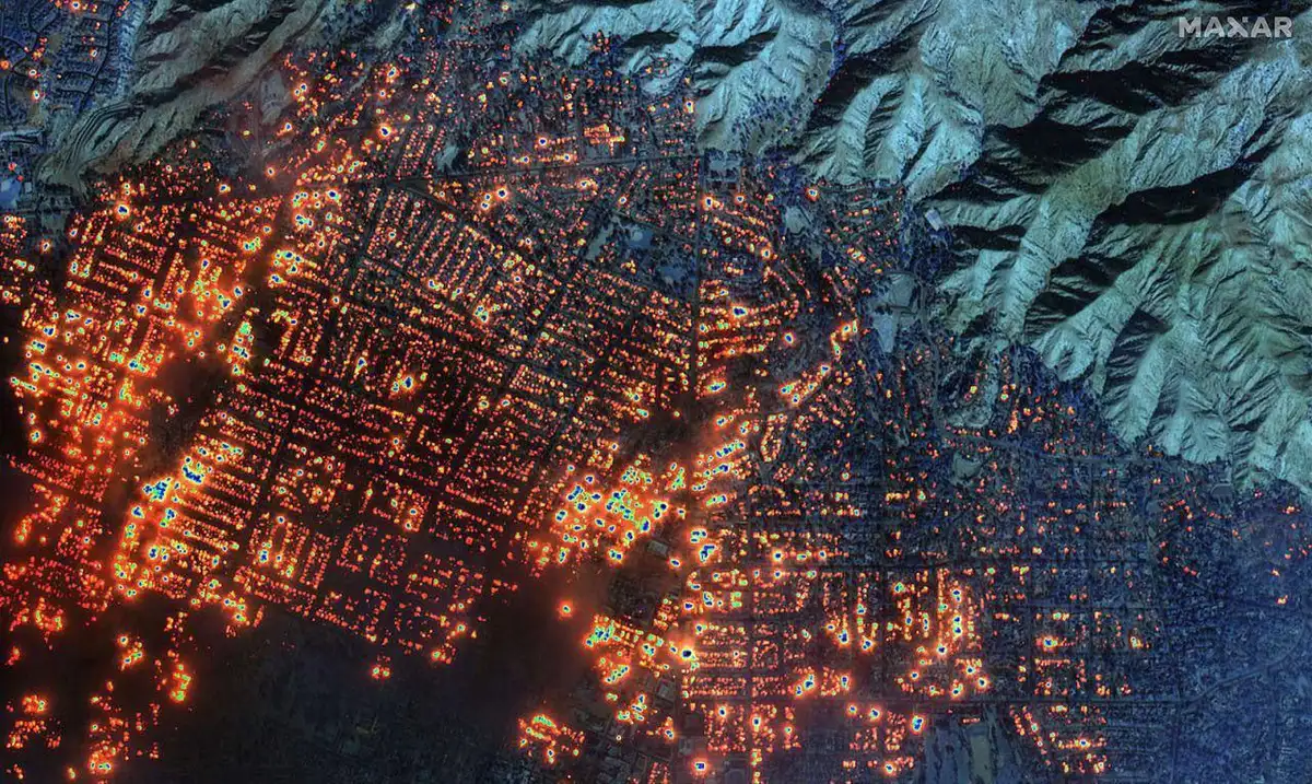 Сравнительные снимки Лос-Анджелеса до и после пожара демонстрируют масштаб разрушений: целые кварталы, включая прибрежный район Малибу, практически стерты с лица земли.