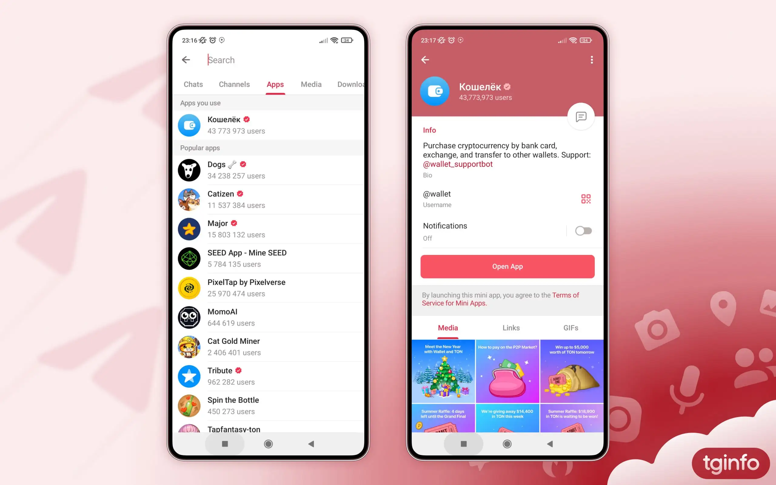Каталог мини-приложений, или маркетплейс, доступен через новую вкладку «Apps» на странице глобального поиска. Пользователи могут искать нужные приложения по названию, просматривать недавно использованные, а также ознакомиться с самым популярным контентом. Это нововведение делает доступ к приложениям внутри Telegram ещё проще и интуитивнее, что может повысить их популярность и использование.