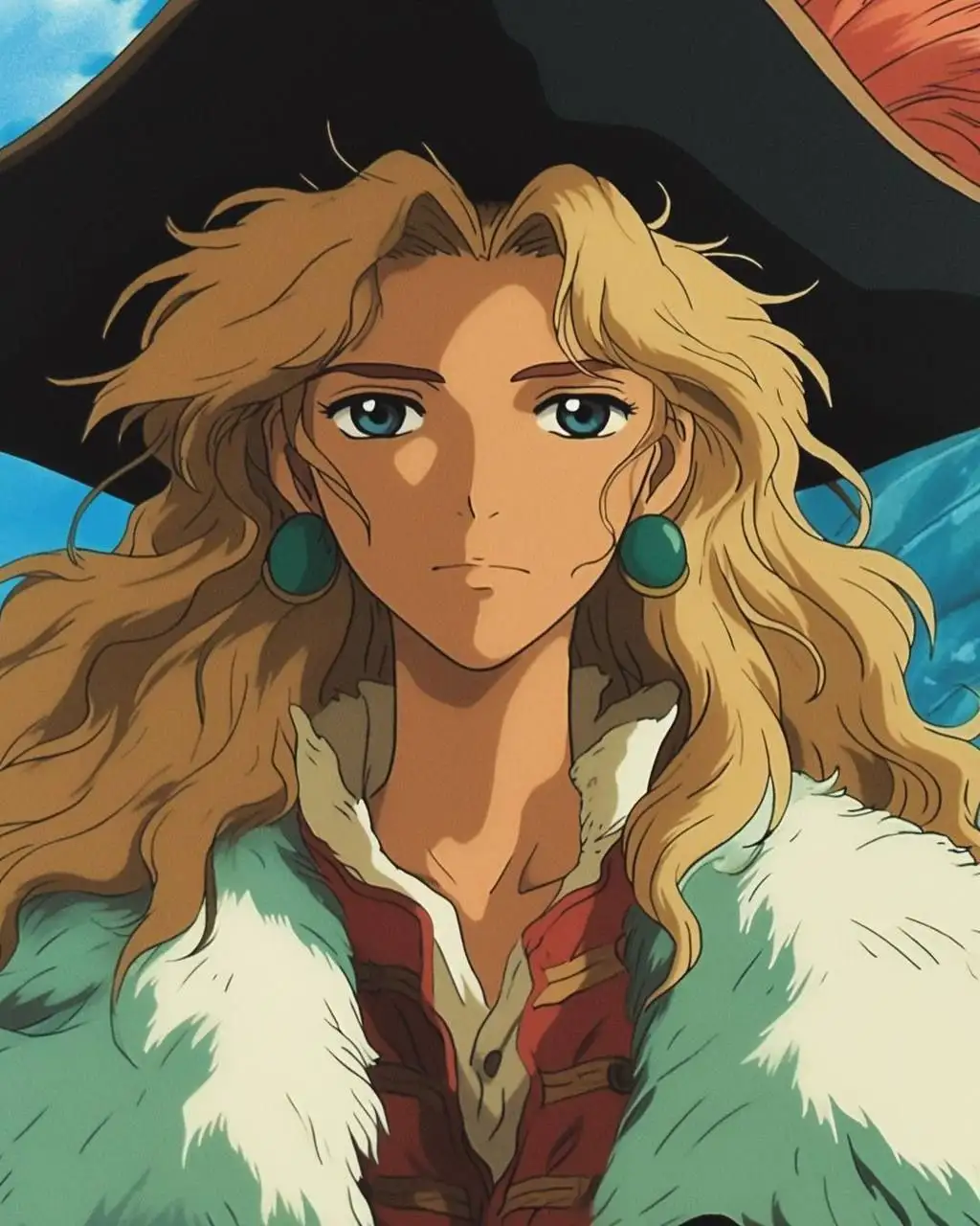 Уилл Тёрнер здесь словно герой аниме-саги: решительный, смелый и немного меланхоличный. Его персонаж в стиле Ghibli обретает особую глубину и притягательность.