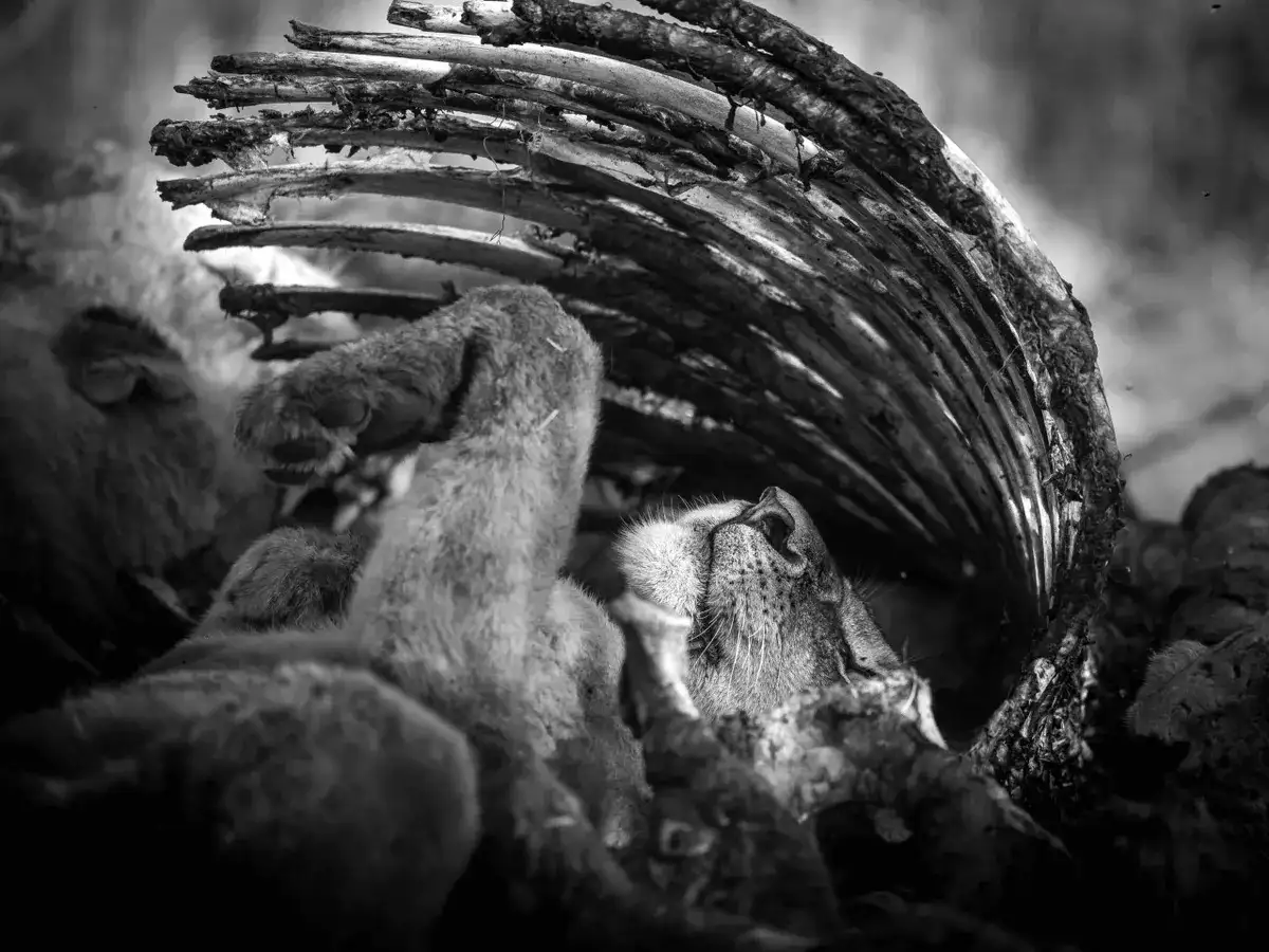 Парящие черепахи, танцующие птицы, прыгающий кит и спящий внутри окровавленной туши лев — всё это впечатляющие работы, представленные на Black and White Photo Awards 2024. Этот год ознаменовался рекордным количеством заявок — около 5000 фотографий со всего мира, каждая из которых претендовала на звание лучшей чёрно-белой фотографии.