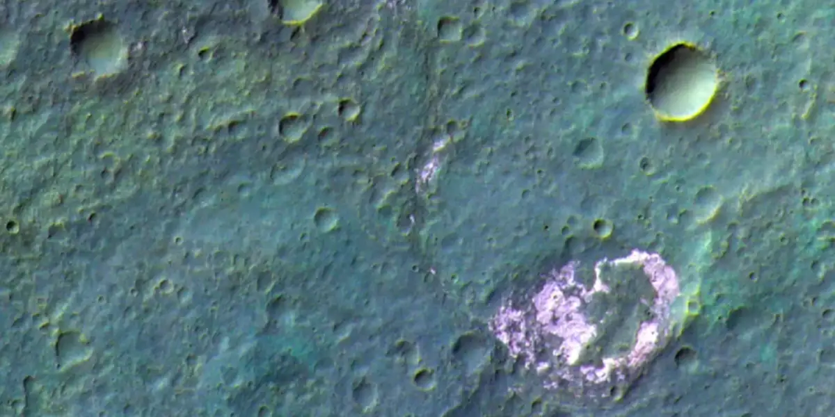 Этот «смайлик» состоит из кольца древних солевых отложений и двух кратеров, которые словно глаза на лице. Его обнаружил аппарат ExoMars Trace Gas Orbiter Европейского космического агентства (ESA), который с 2016 года изучает атмосферу Марса. Особенность этой находки в том, что увидеть её можно лишь при использовании инфракрасных камер. В обычных условиях она просто сливается с остальной поверхностью Марса.